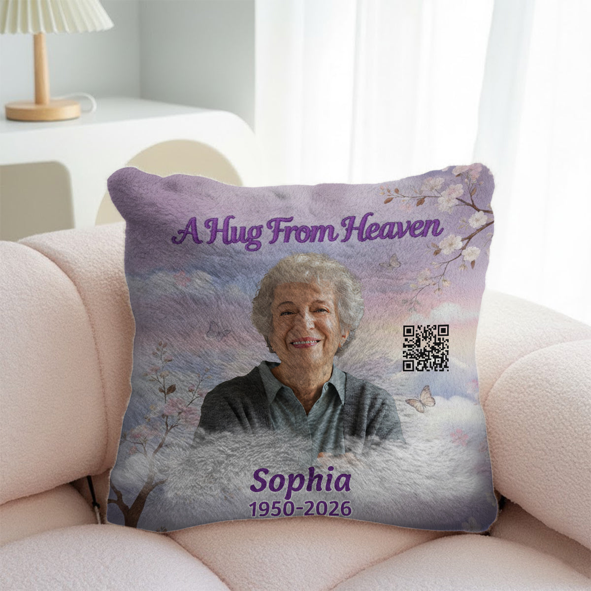 Eine Umarmung aus dem Himmel – Personalisiertes Gedenkkissen aus Kunstfell (quadratisch)