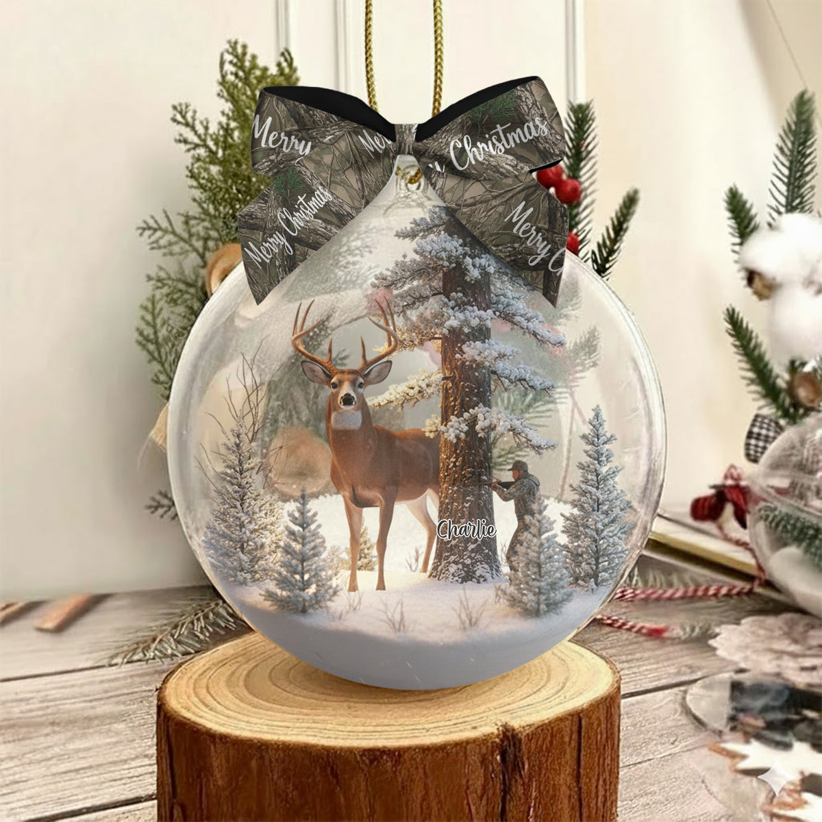 Weihnachtsgeschenk für Jäger – Personalisierte Schneekugel mit Bogen