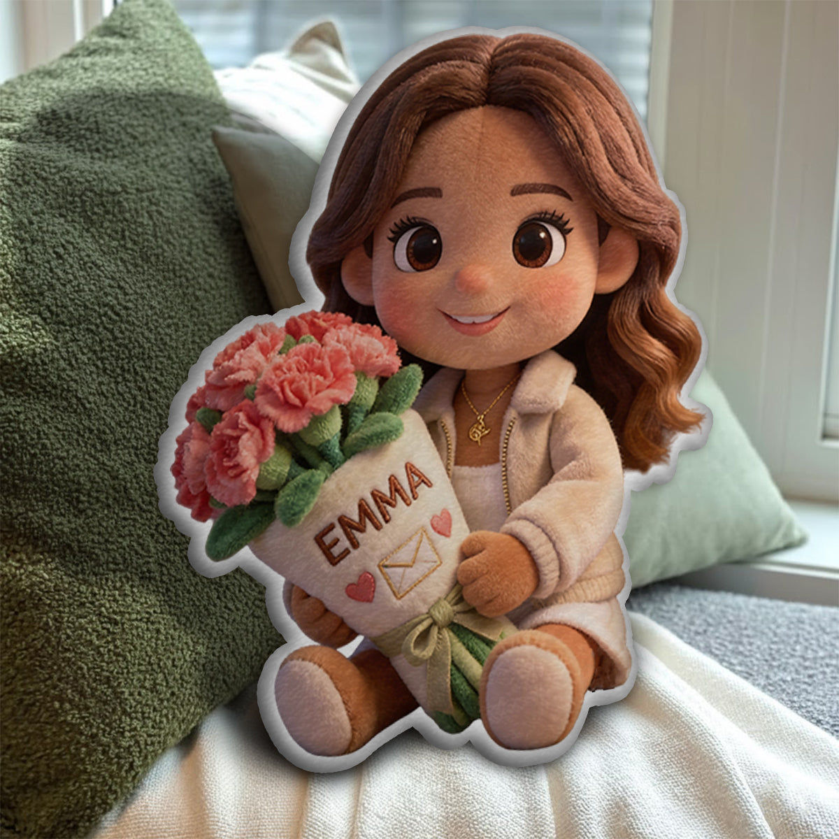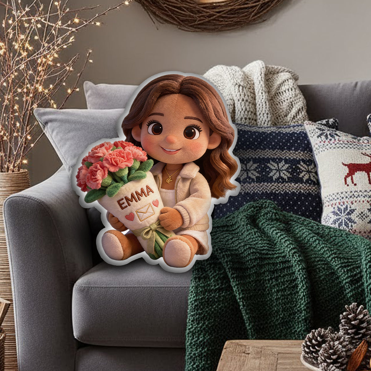 Geburtsblumen-Kissen mit Foto (individuell gestaltbar) – Selbstliebe-Kissen in Kunstfellform