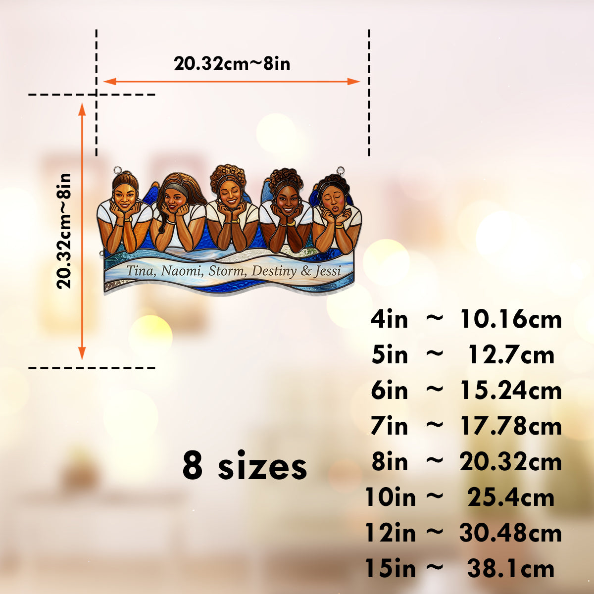 - 1× Custom Acrylic Suncatcher Ornament (design as chosen)