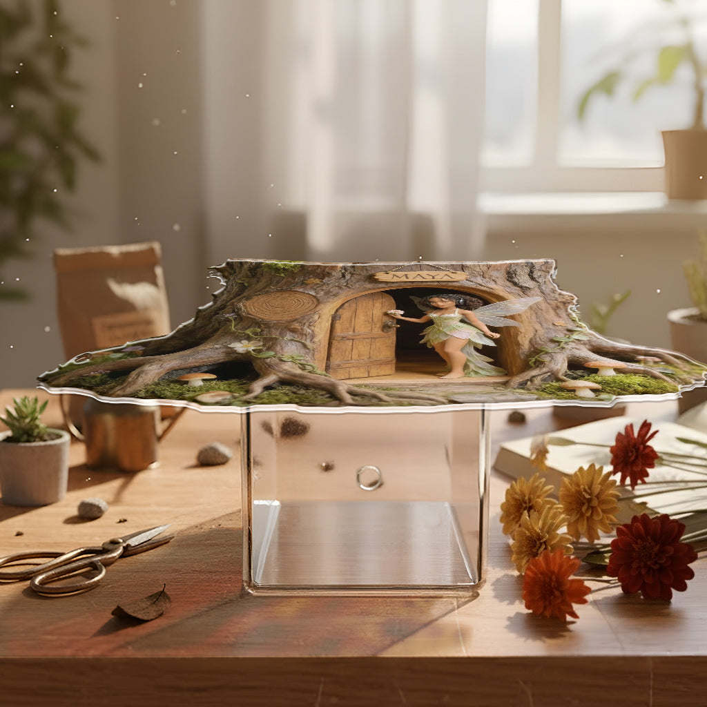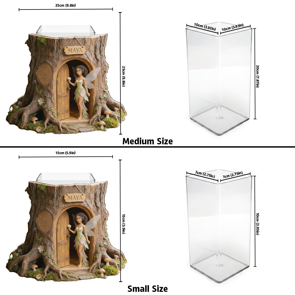 Individuell gestaltete Gartenfee mit Lieblingsblume – personalisierter Acryl-Gartentopf