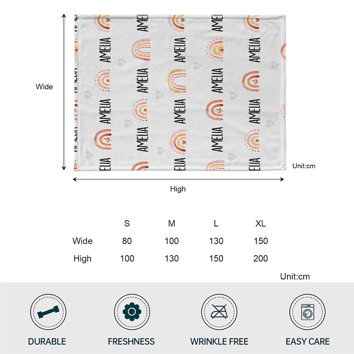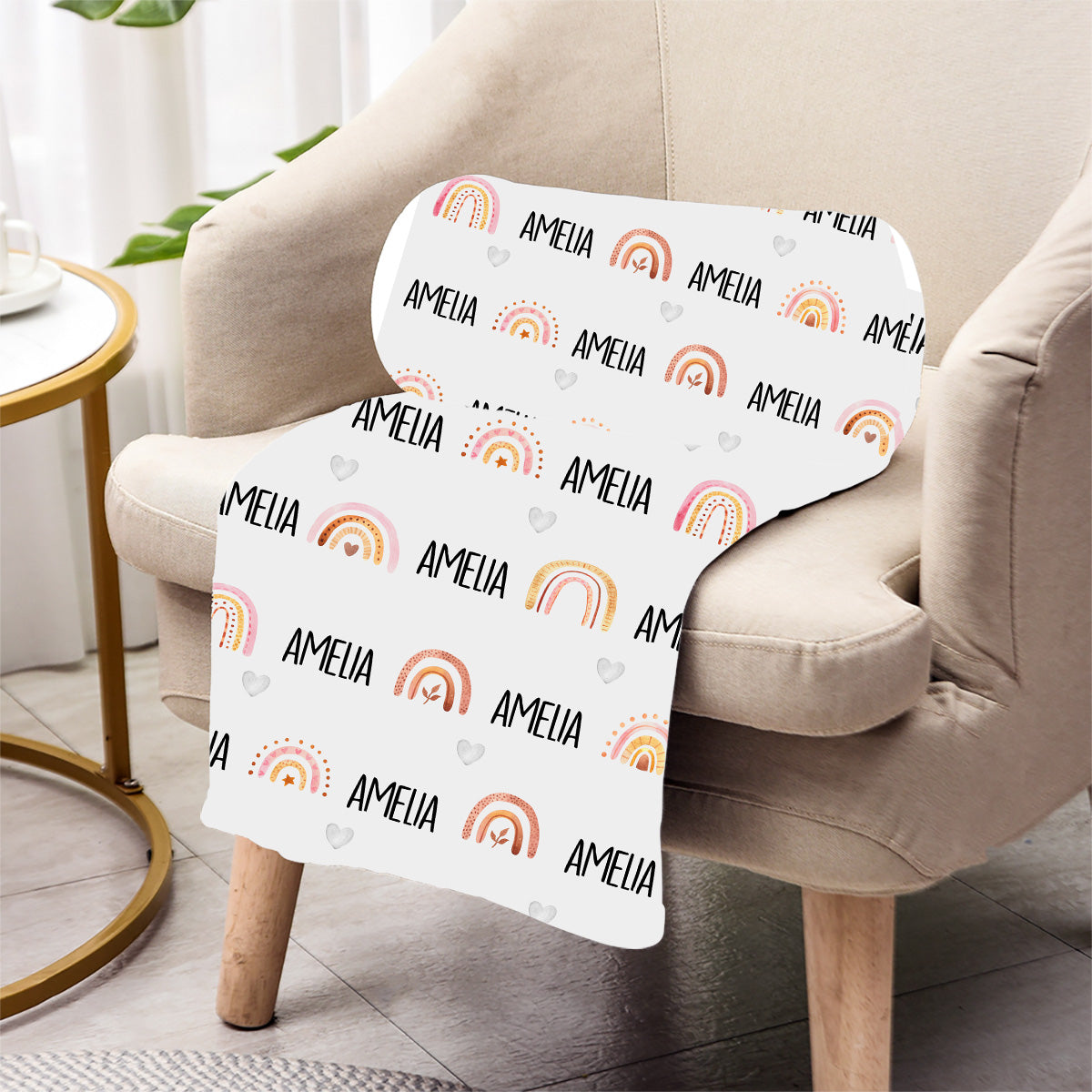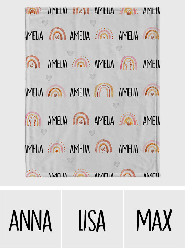 Personalisierte Retro-Regenbogen-Decke mit individuellem Namen für die Enkelin