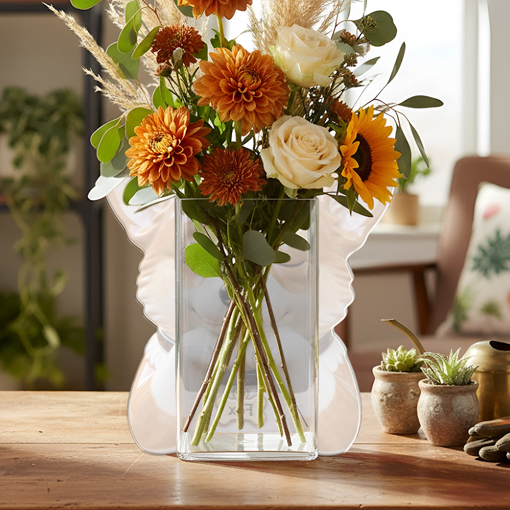The front acrylic panel is printed on one side with vivid, high-quality colors, adding depth and personality while keeping a clean, modern look. The pot’s height and proportions make it suitable for small plants, fresh flowers, dried arrangements, or artificial bouquets, making it a flexible décor piece for homes, offices, or gift-giving.