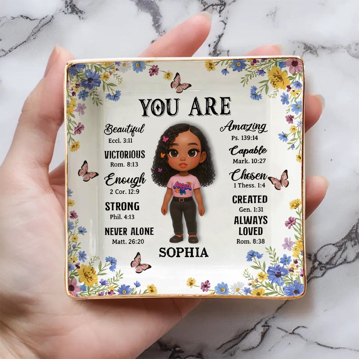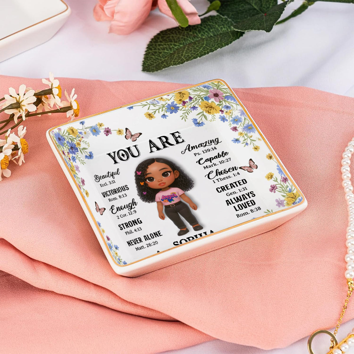 Gott sagt, du bist es – Personalisierte christliche Schmuckschale mit Volldruck