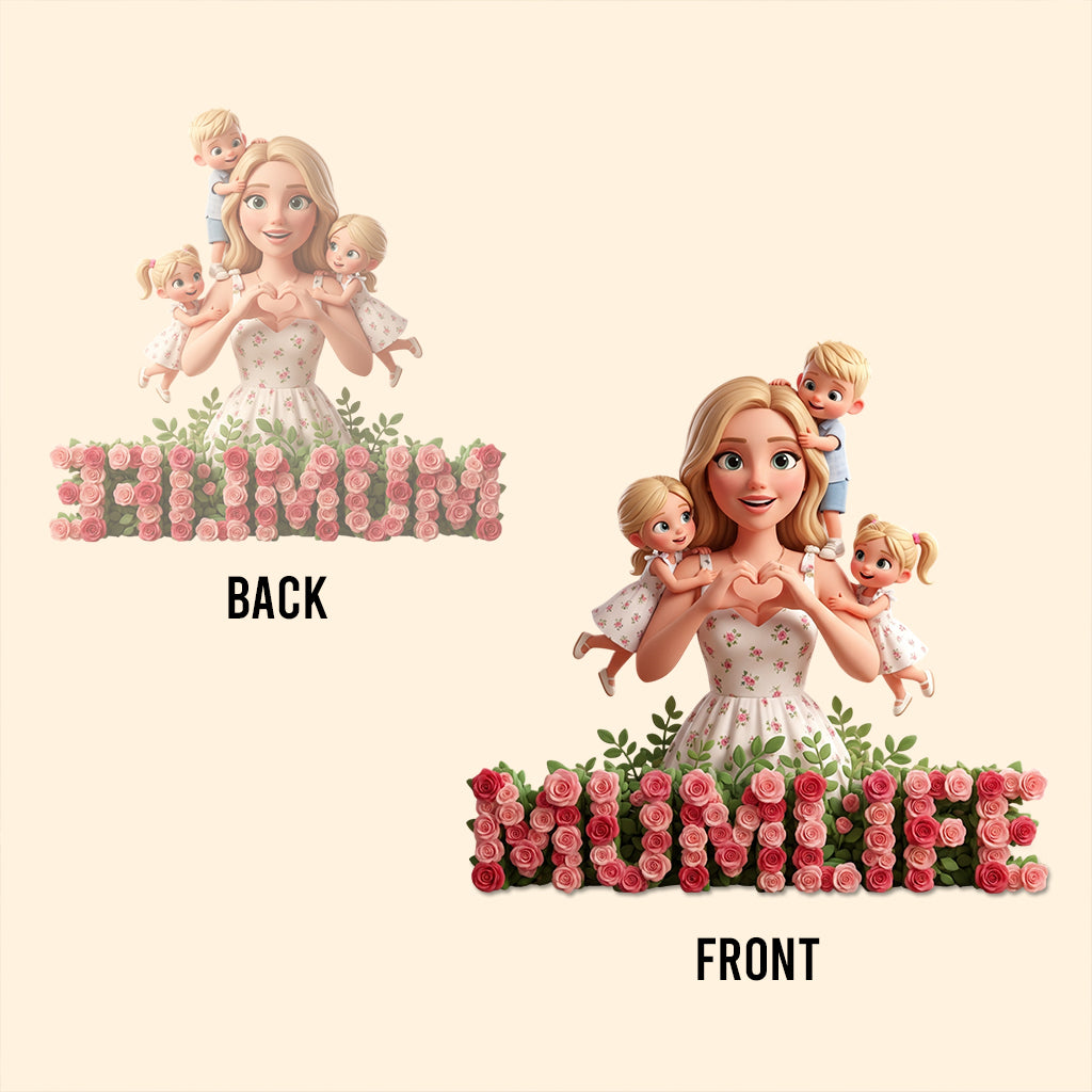 Herzförmige Hände mit Blume – Personalisierte Acrylplakette in individueller Form für die Mutter