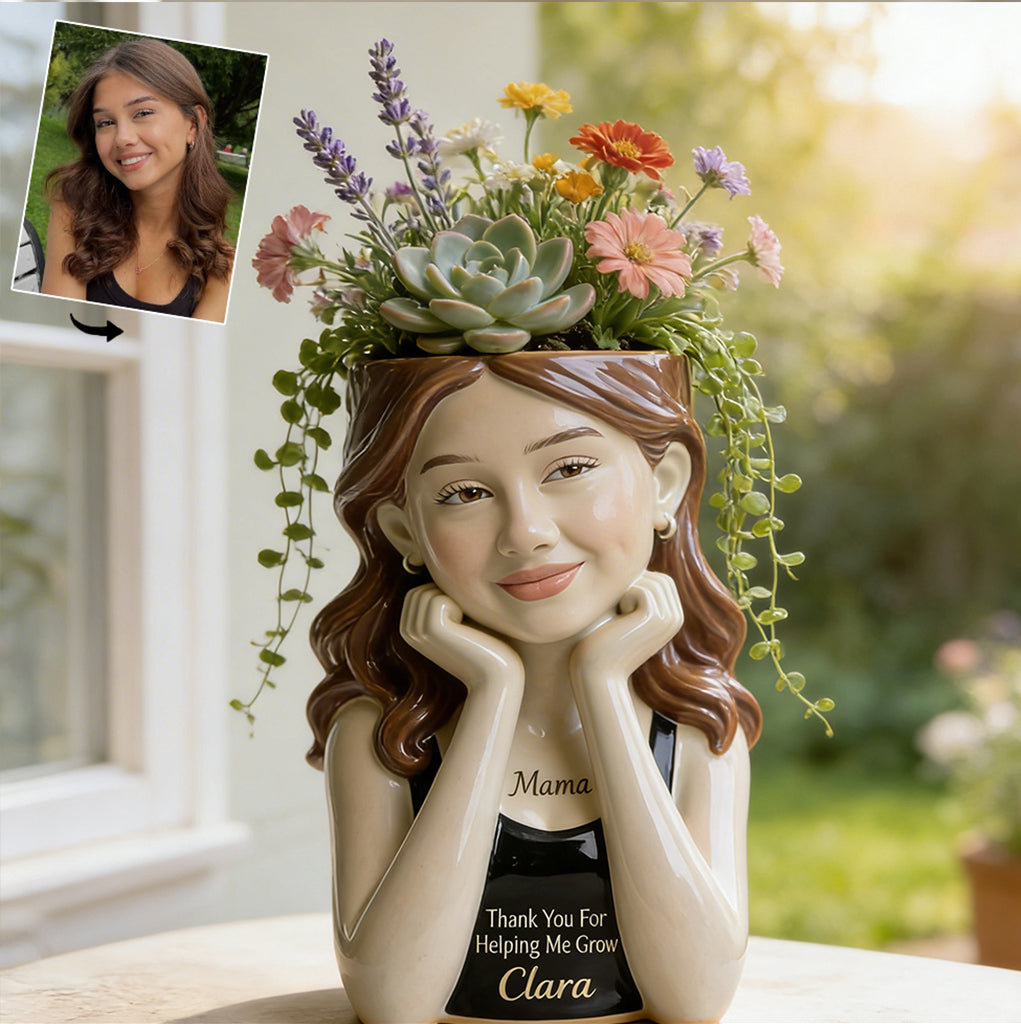 Enhance any space with this customizable acrylic pot, designed to combine function and personal style. The product includes a tall, clear acrylic pot paired with a custom-shaped acrylic front layer that showcases your personalized design.