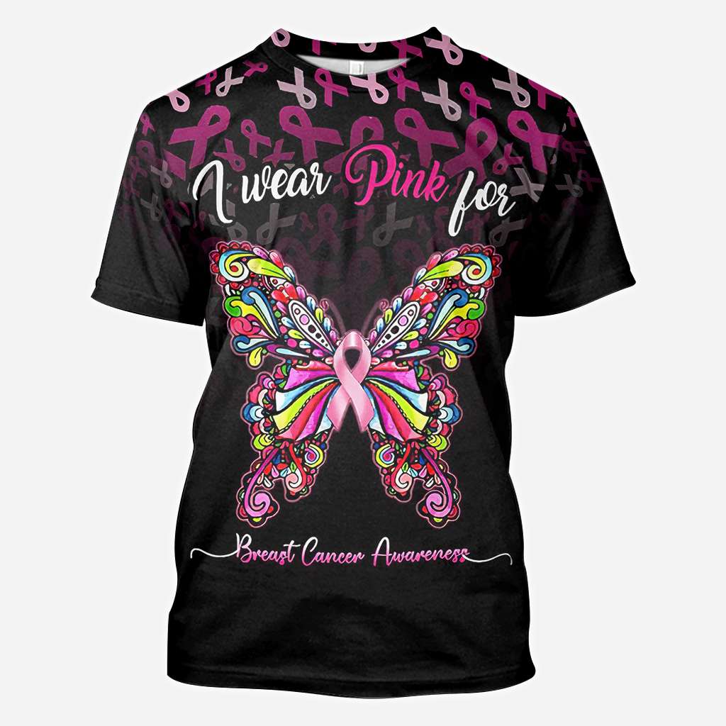 Ich trage Pink zur Sensibilisierung für Brustkrebs – Schmetterlingsmotiv – T-Shirt und Hoodie zur Sensibilisierung für Brustkrebs (0822)