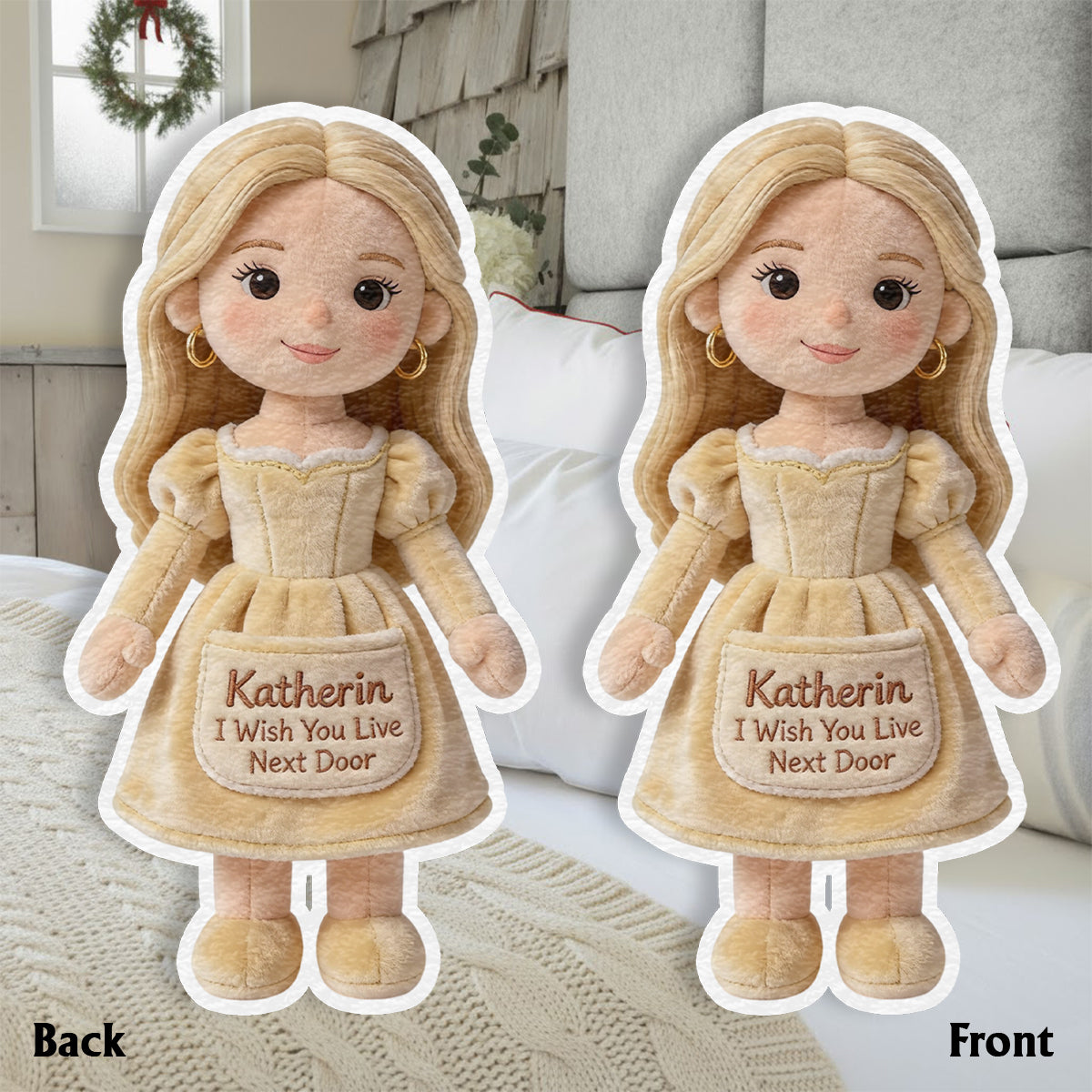 Ich wünschte, du würdest nebenan wohnen – personalisiertes Kissen in Form eines besten Freundes aus Kunstfell