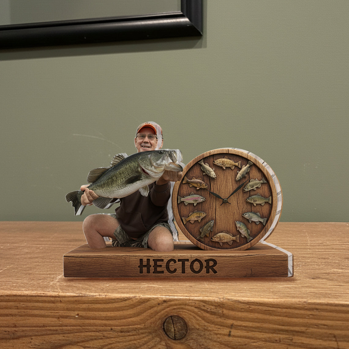 Es ist immer Angelzeit – Personalisierte Tischuhr mit Anglermotiv