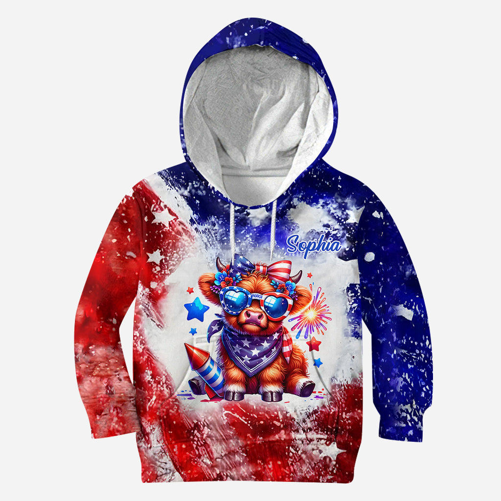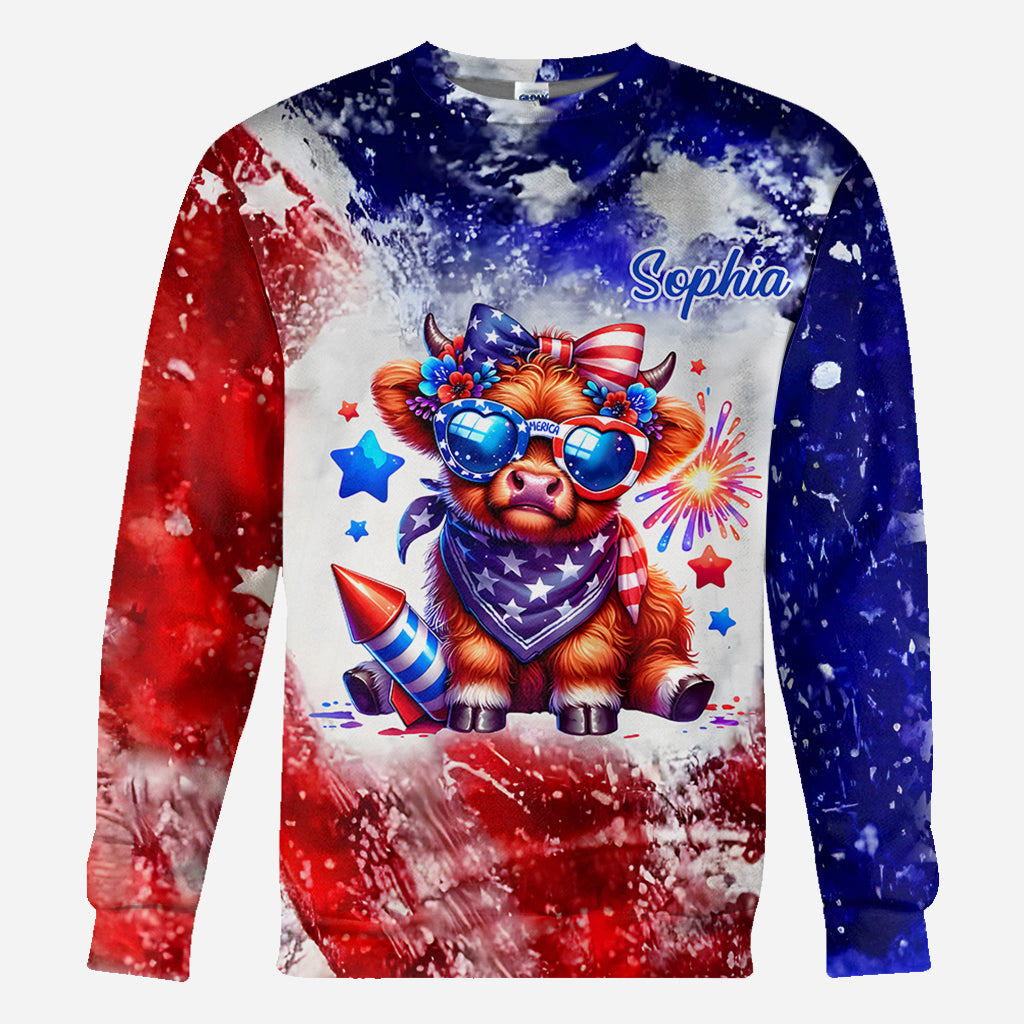 Highland-Rind-Shirt zum 4. Juli – Personalisiertes Highland-Rind-Shirt mit Allover-Print