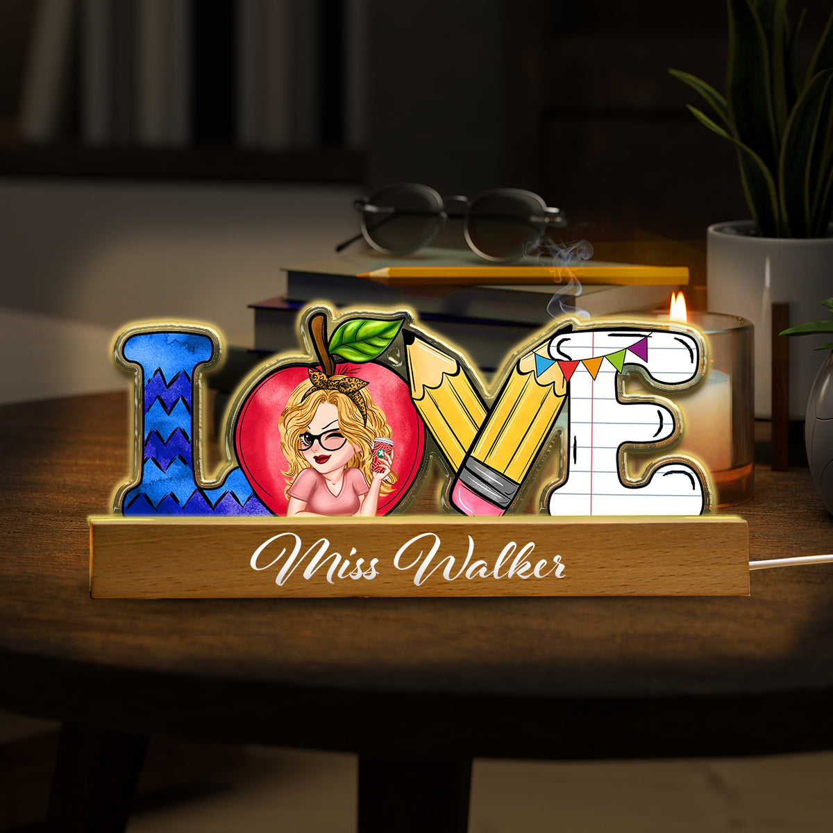 Liebe zum Lehren – Personalisierte LED-Nachtleuchte in Lehrerform