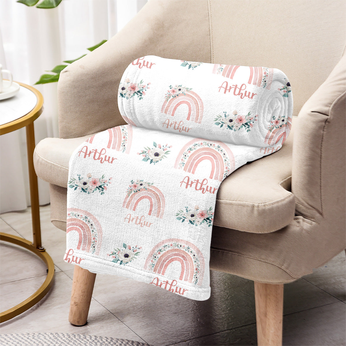 Retro-Regenbogen-Decke mit individuellem Namen – personalisierte Decke für den Enkel