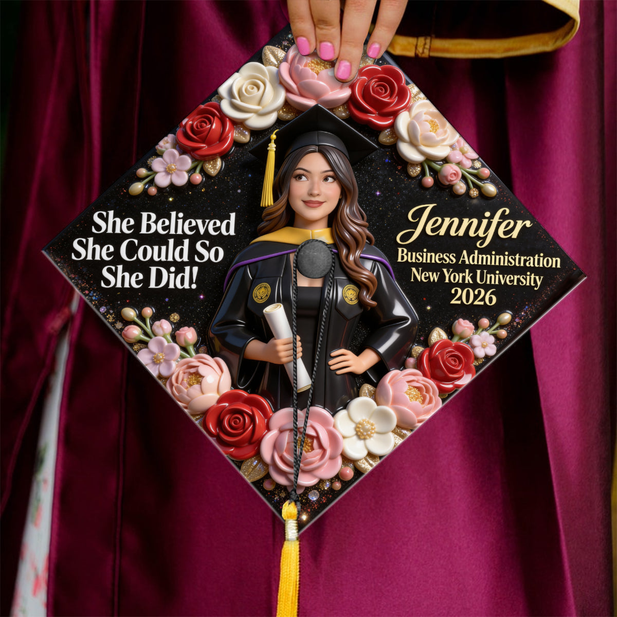 Sie glaubte daran, dass sie es schaffen konnte, und sie schaffte es! – Personalisierter Abschlussmützenaufsatz