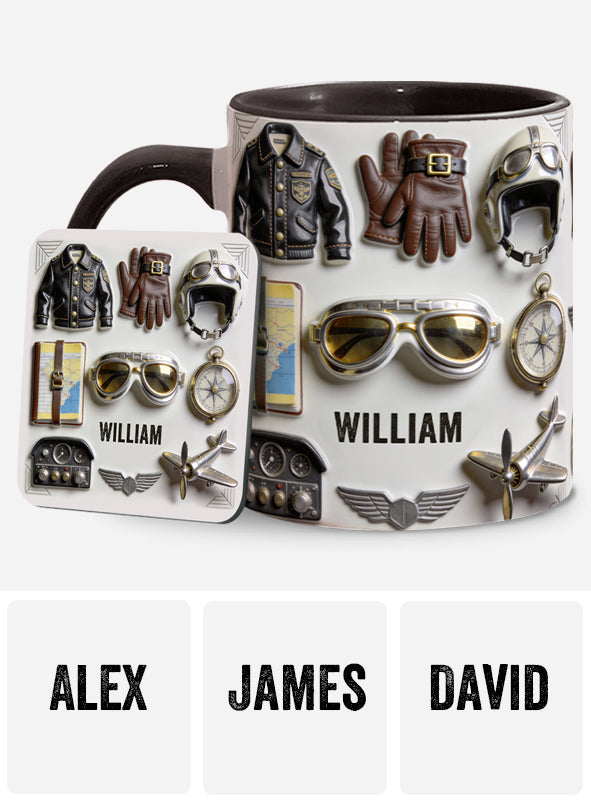 Taste Flight – Personalisierte Tasse und Untersetzer mit Pilotenmotiv