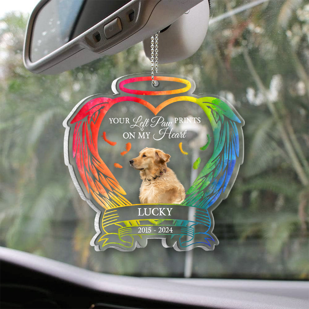 Du hast Pfotenabdrücke in meinem Herzen hinterlassen – Personalisierter transparenter Autoanhänger mit Hundemotiv