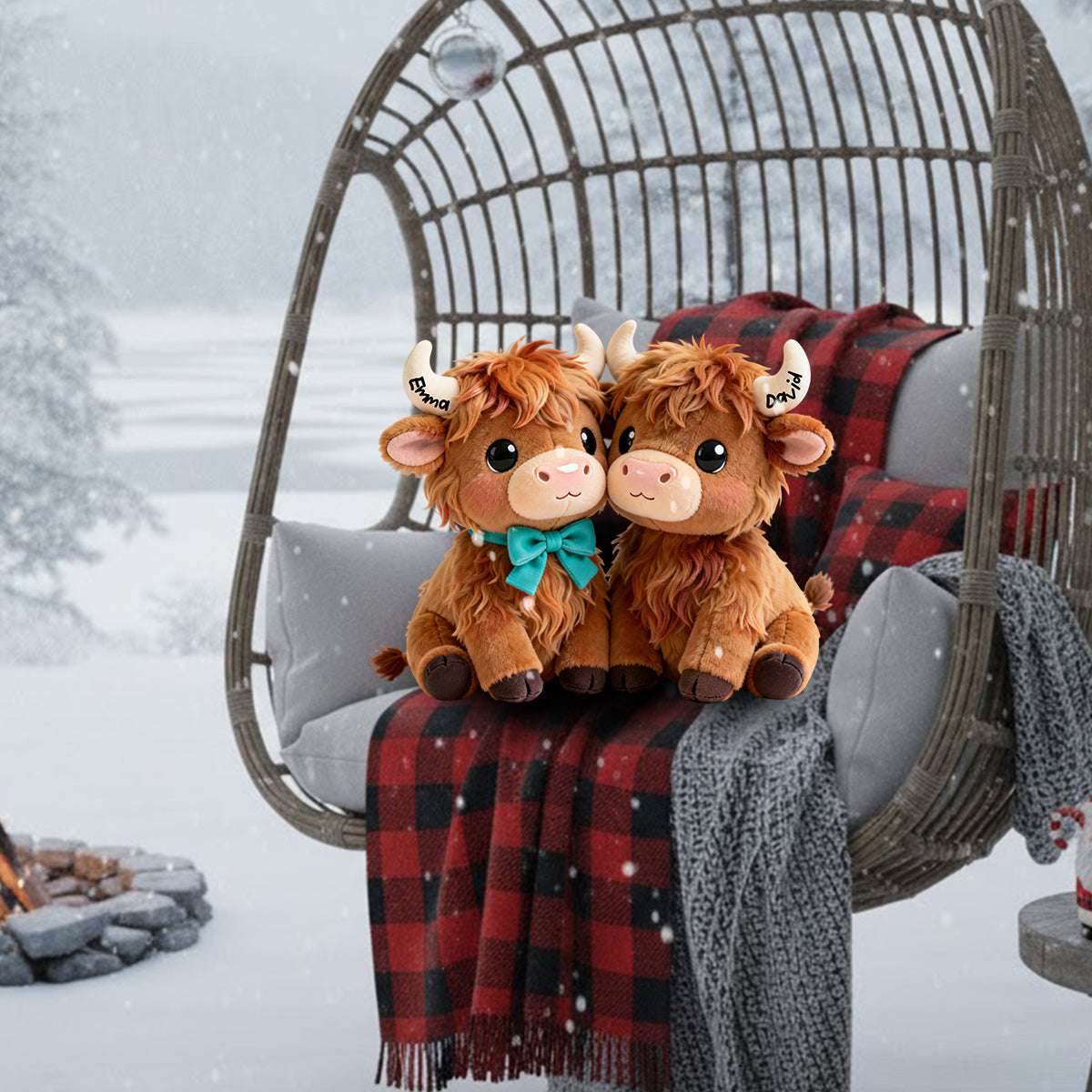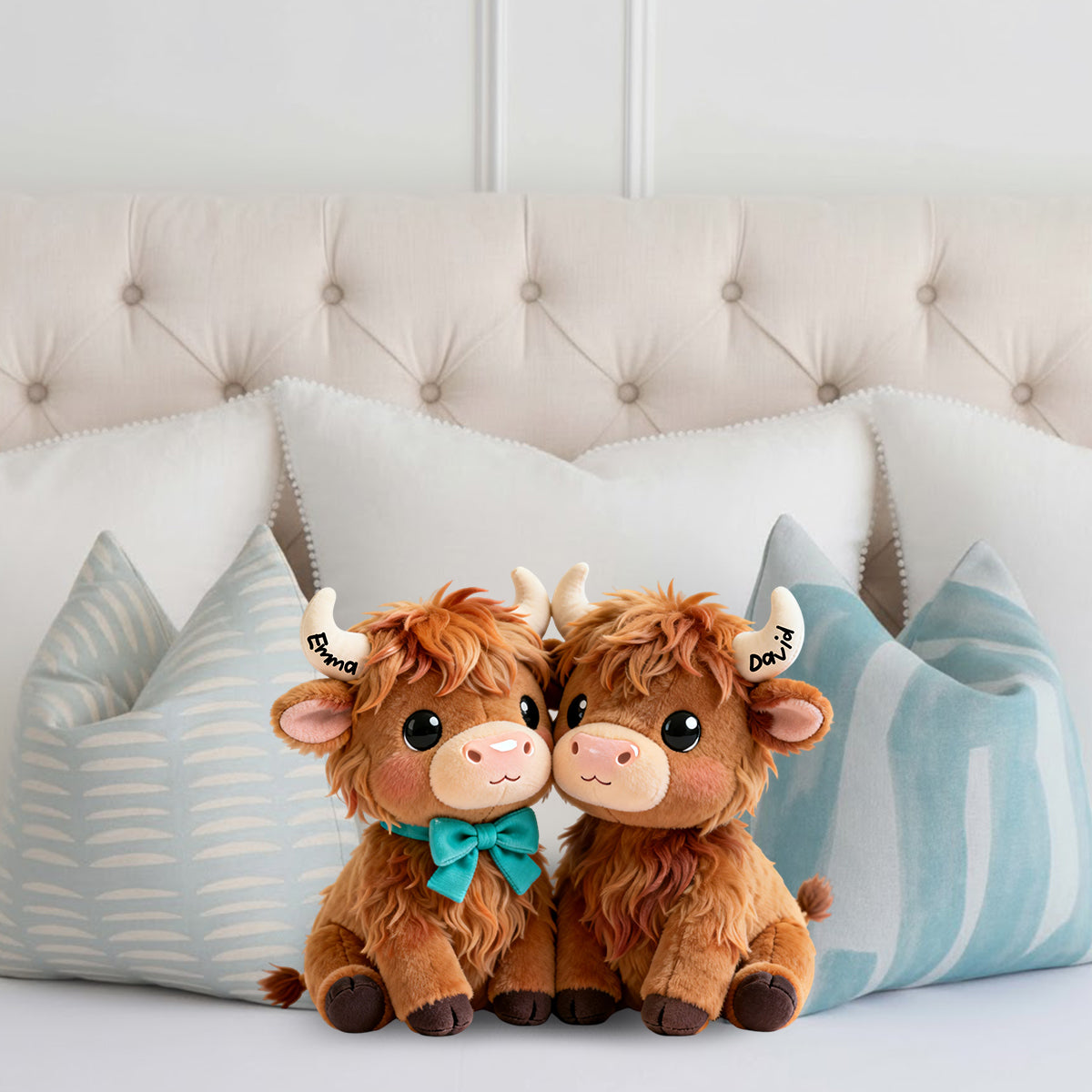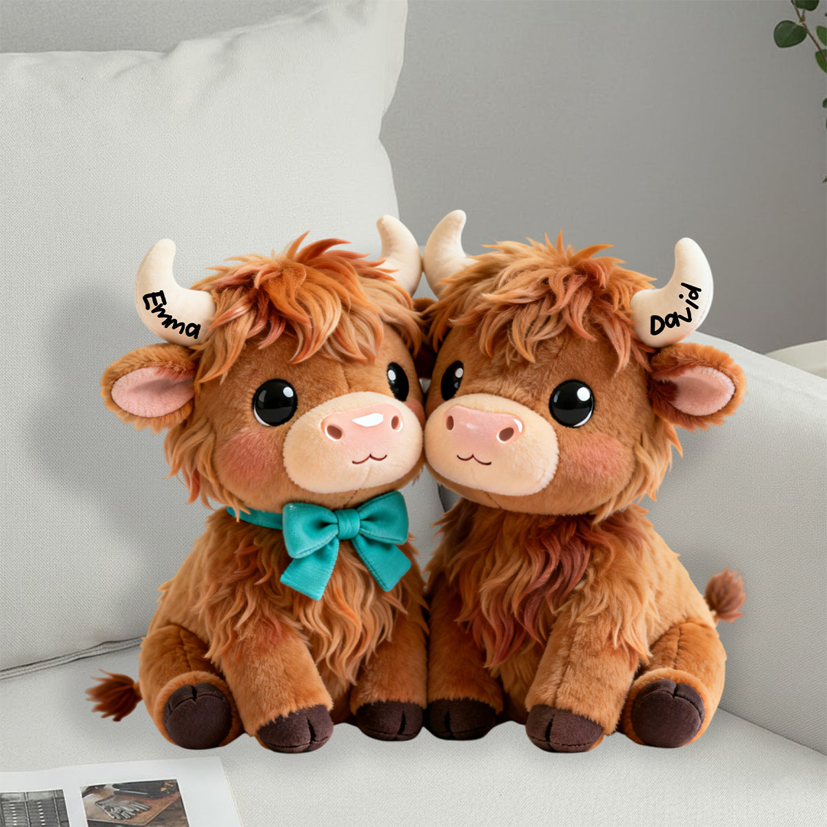 Du & Ich – Personalisiertes Kissen in Form eines Hochlandrindes aus Kunstfell
