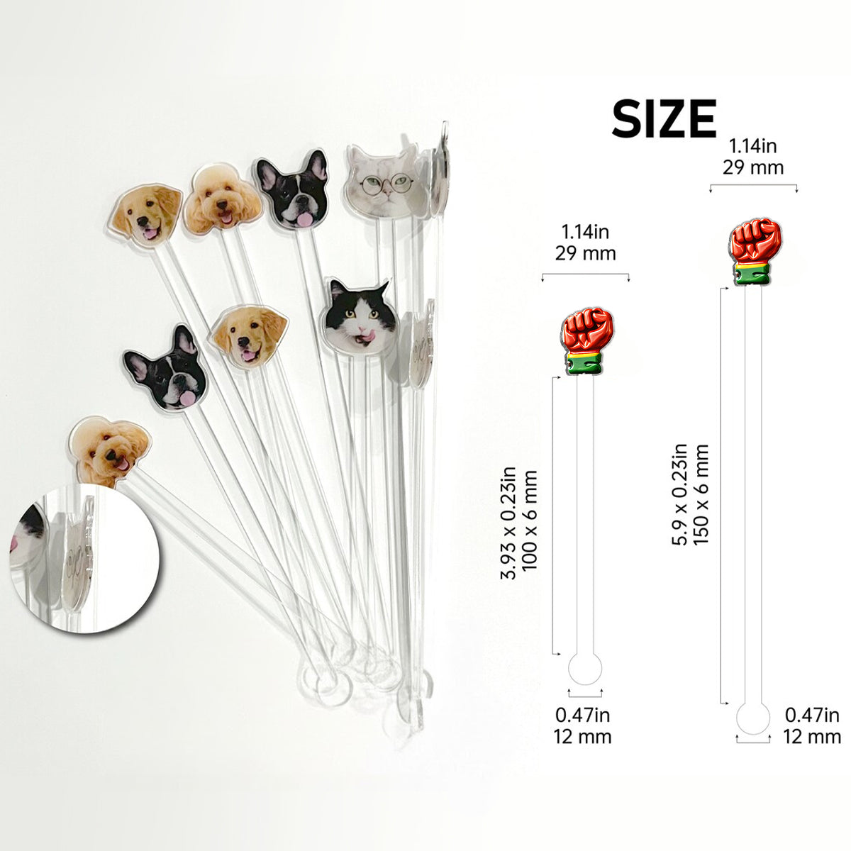 - Taille des agitateurs en acrylique : 5,54 pouces, 7,51 pouces