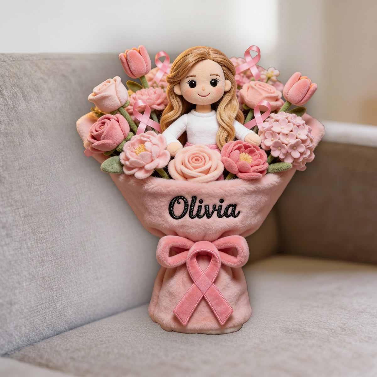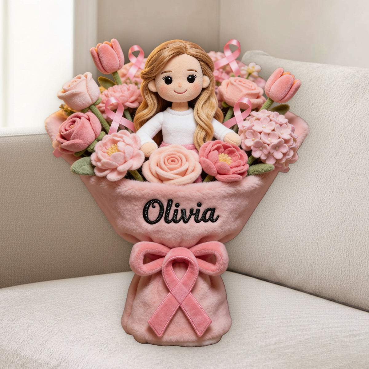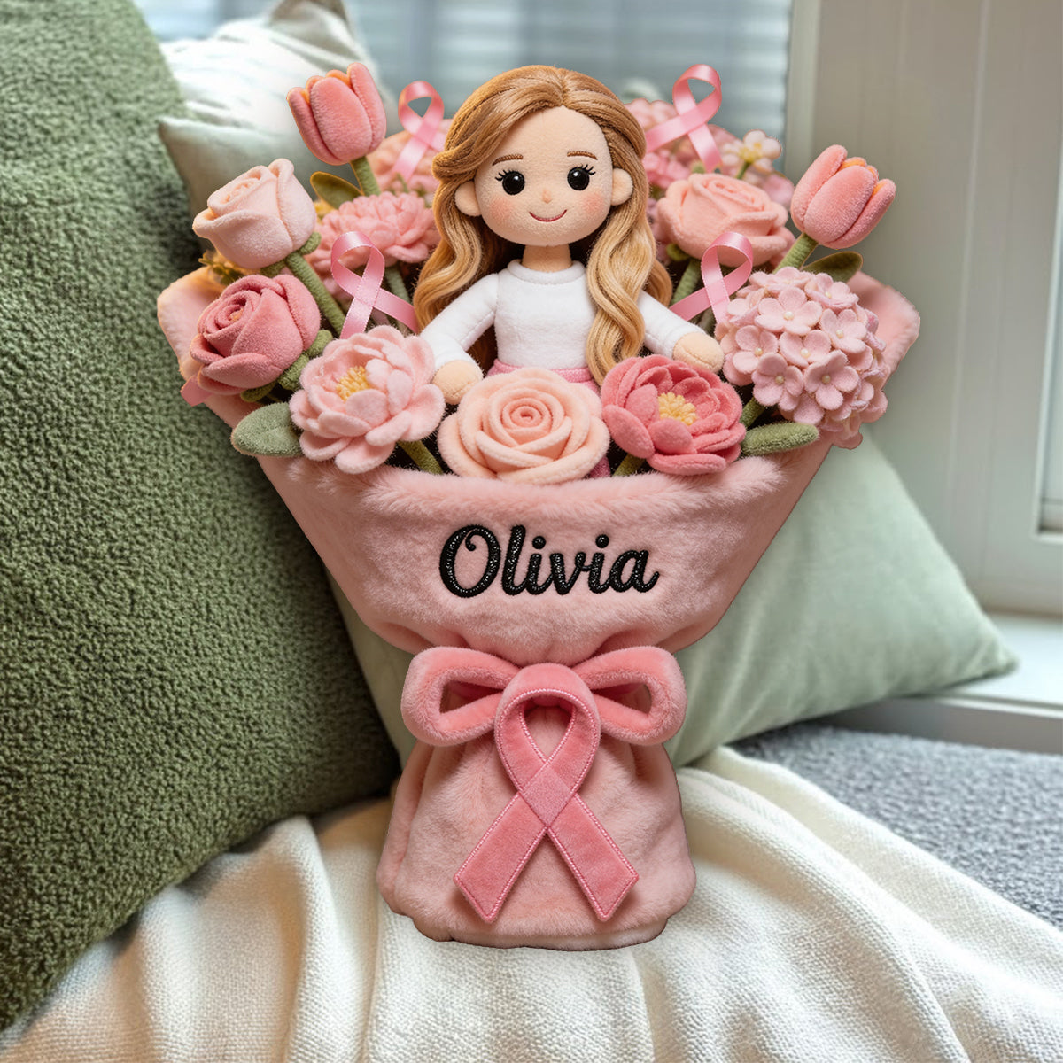 Sensibilisation au cancer du sein - Coussin en fausse fourrure premium personnalisé pour la sensibilisation au cancer du sein