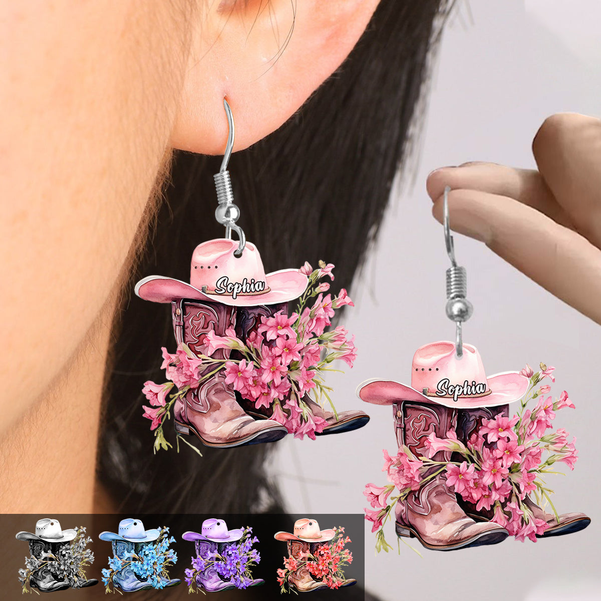 Bottes de cowgirl - Boucles d'oreilles de cowgirl personnalisées