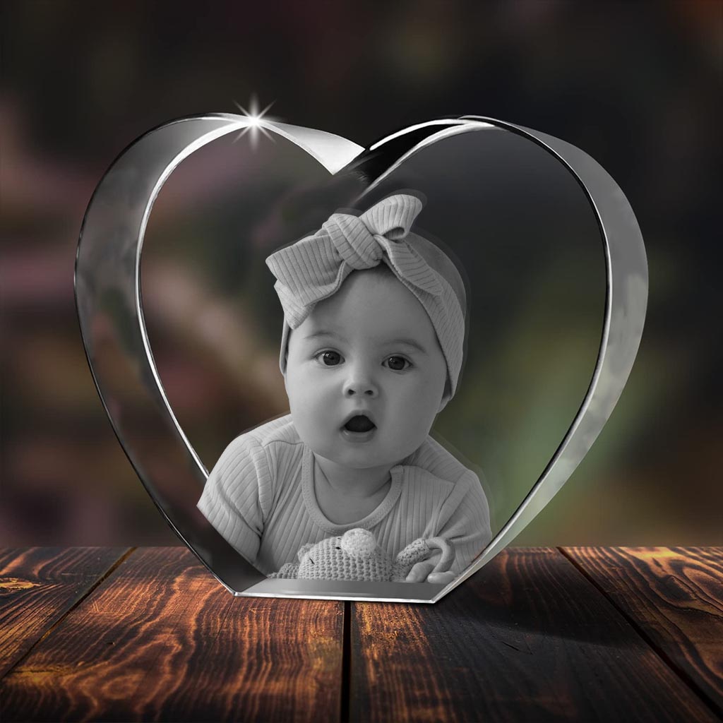 Lampe en cristal 3D en forme de cœur avec gravure laser personnalisée pour nouveau-né
