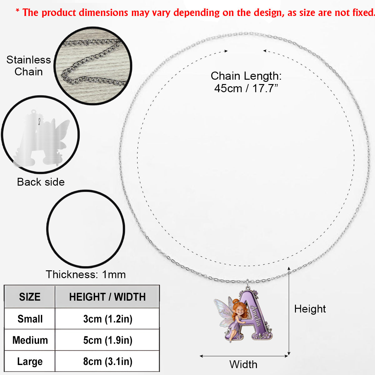 Fairy Character Alphabet Letter - Personalized Kid Shaped Metal Pendant Necklace