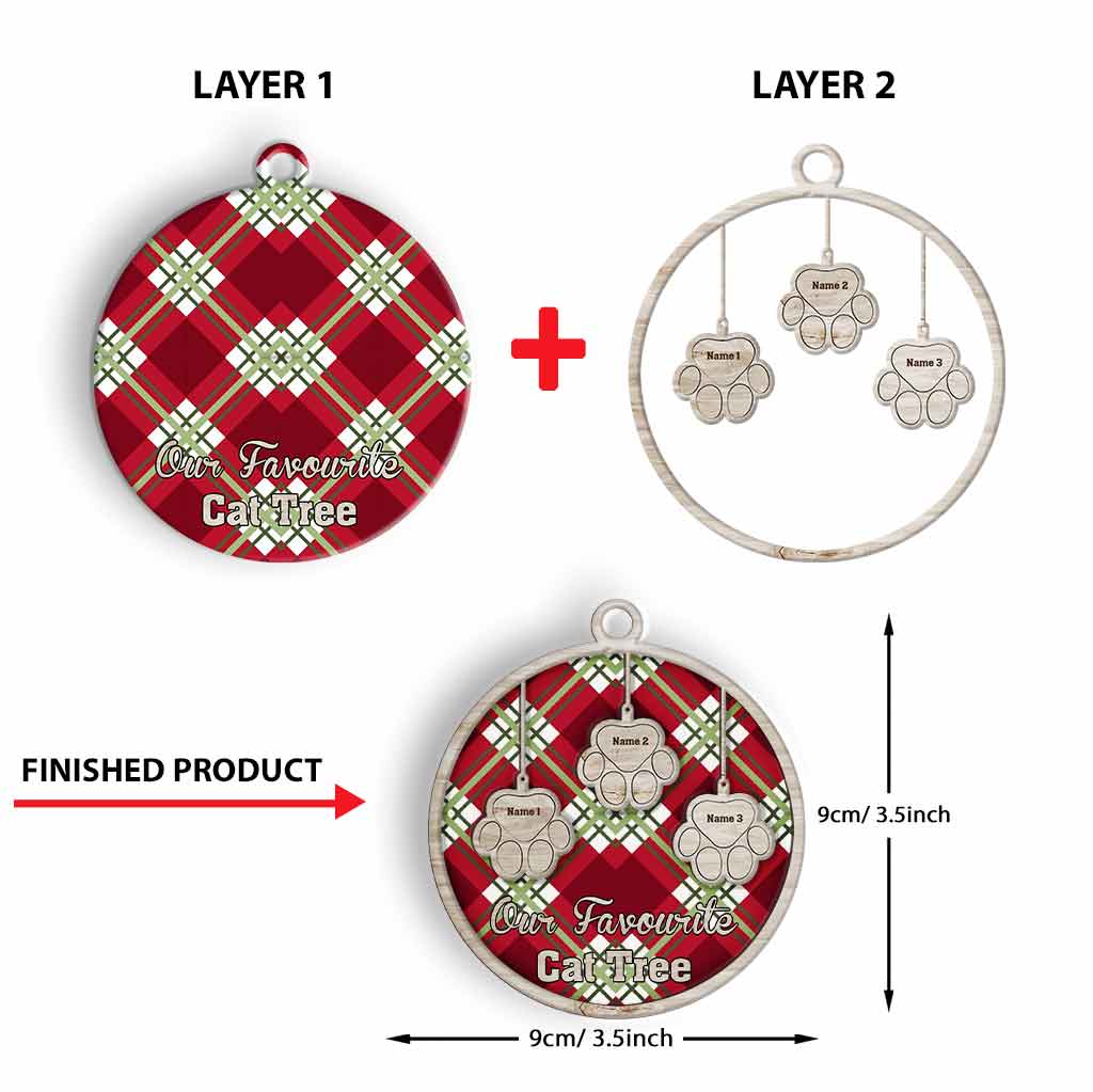 Arbre à chat préféré - Ornement de Noël personnalisé en bois superposé