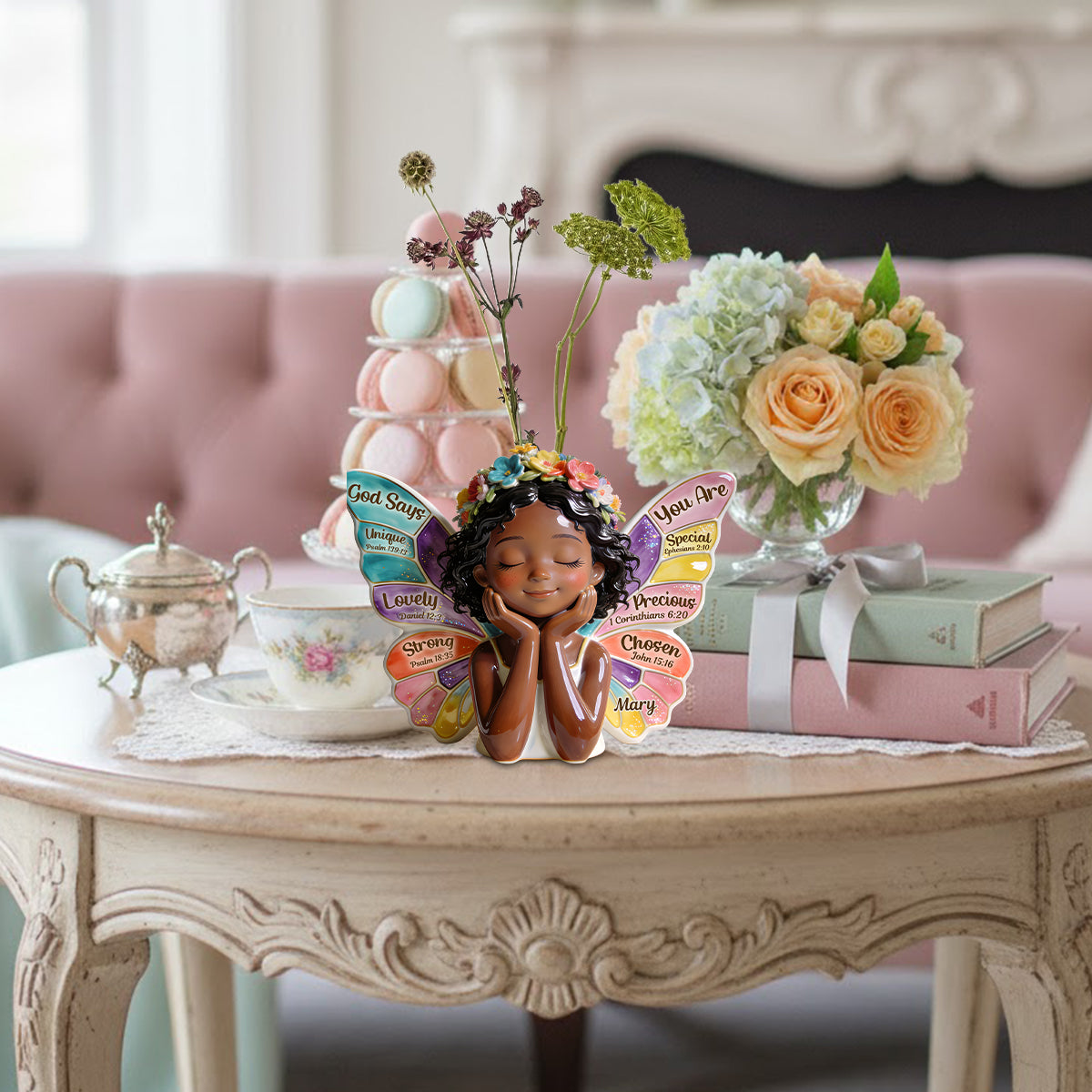 Dieu dit que tu es - Vase à fleurs en acrylique personnalisé de forme afro-américaine