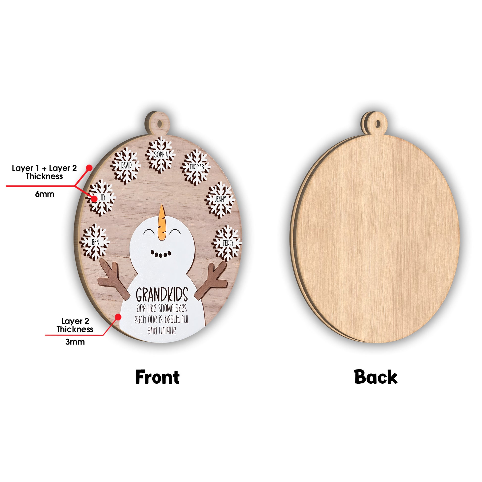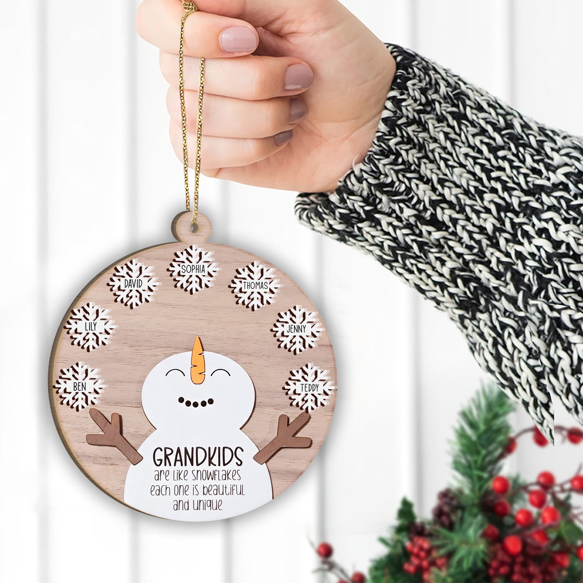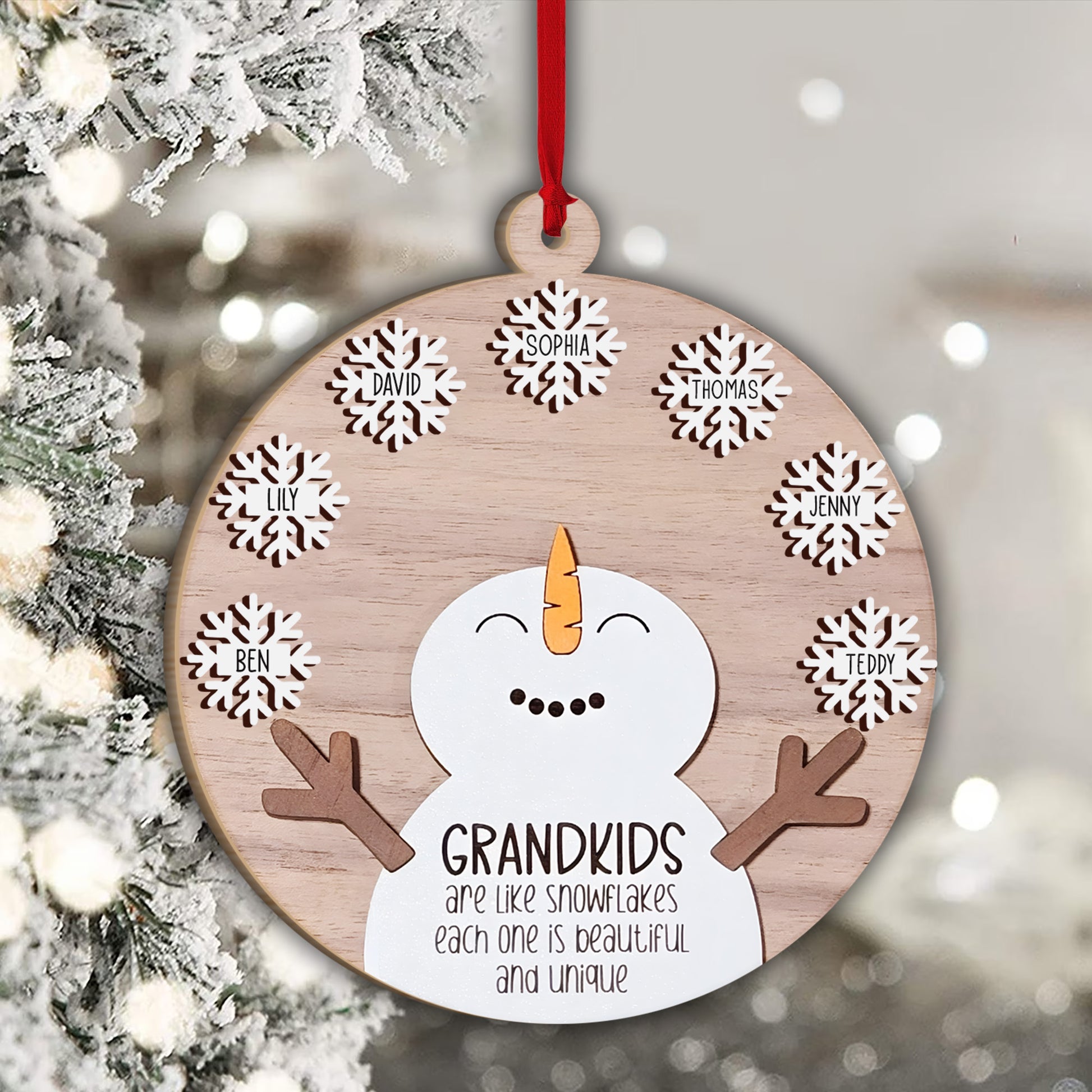 Les petits-enfants sont comme des flocons de neige - Cadeau pour grand-mère - Ornement personnalisé en deux parties