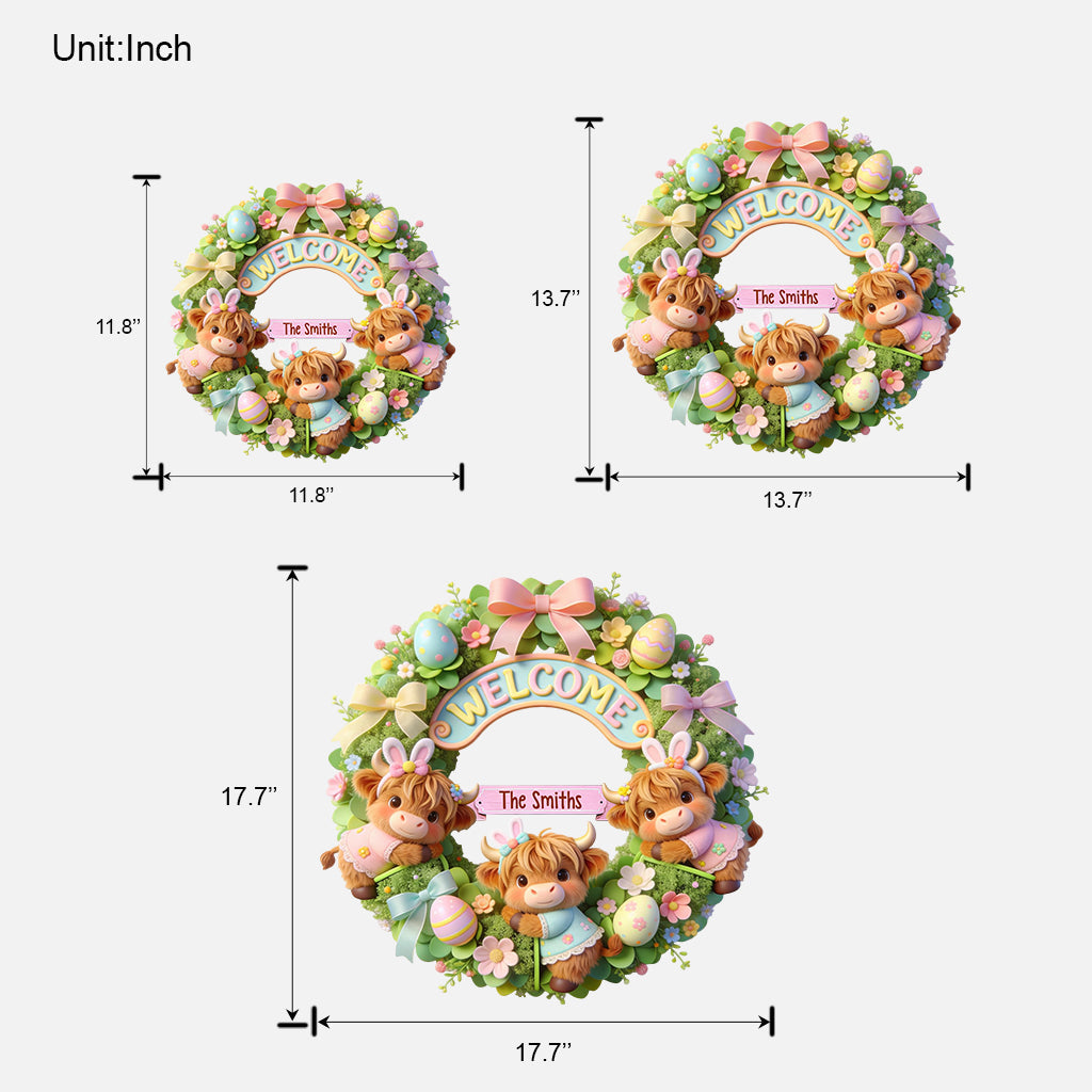 Joyeuses Pâques ! Vache des Highlands mignonne - Panneau en bois personnalisé en forme de vache des Highlands