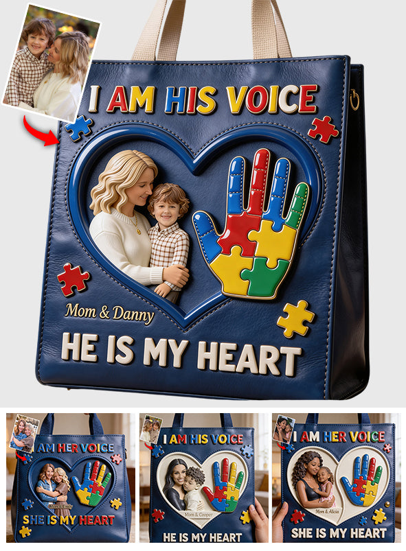 I Am His Voice, He Is My Heart - Personalized Autism Awareness Tote Bag