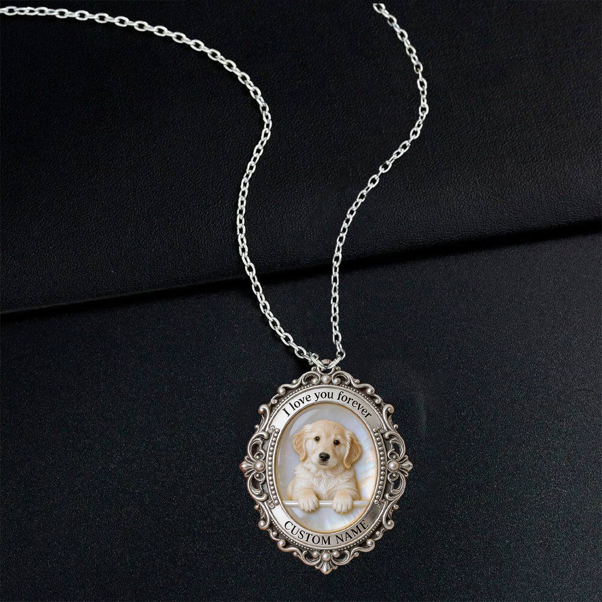 I Love You Forever - Personalized Dog Shaped Metal Pendant Necklace