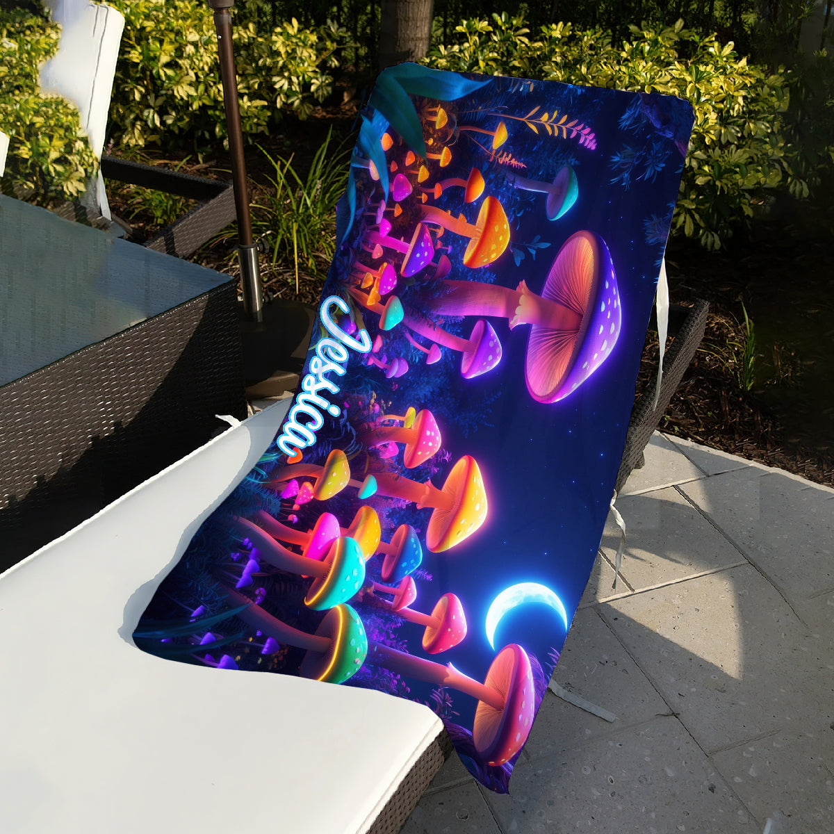 Serviette de plage/de bain personnalisée à séchage rapide, motif champignon, « Into The Forest »