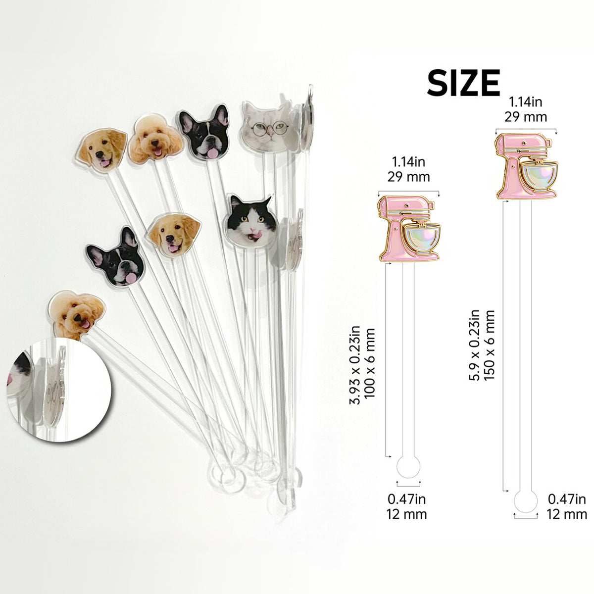 - Taille des agitateurs en acrylique : 5,54 pouces, 7,51 pouces