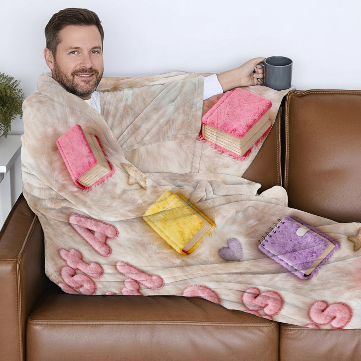 Enveloppez-vous ou enveloppez votre enfant de douceur et de chaleur avec la couverture portable personnalisable, conçue pour les adultes et les enfants. Grâce à ses poches uniques et sa doublure en polaire de qualité supérieure, elle offre un parfait équilibre entre détente et confort mains libres, idéale à la maison, en voyage ou pendant les jeux.