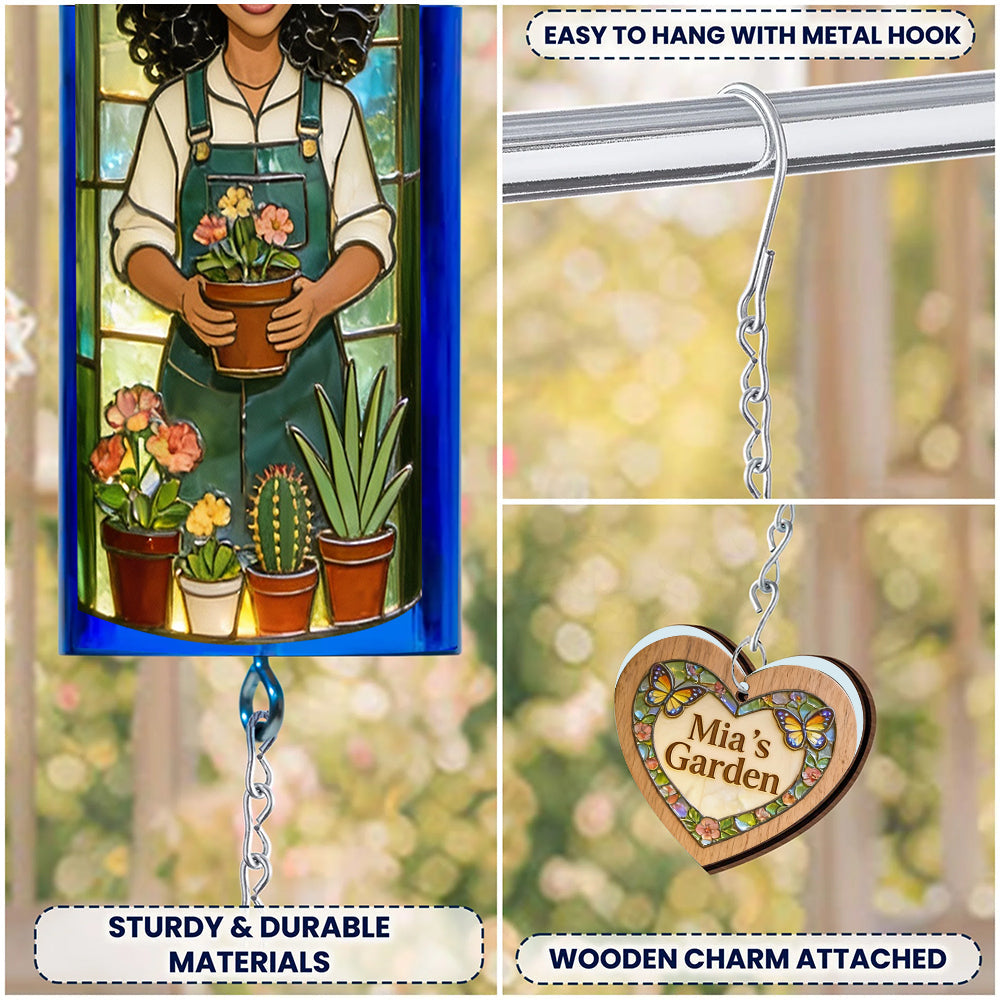 Juste une fille qui aime jardiner - Carillon éolien personnalisé en forme de bouteille de vin pour le jardinage