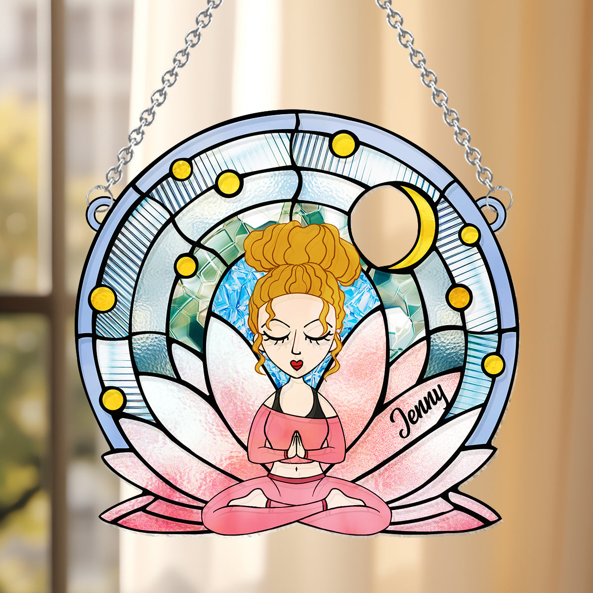Namaste - Ornement attrape-soleil personnalisé pour fenêtre, inspiré du yoga