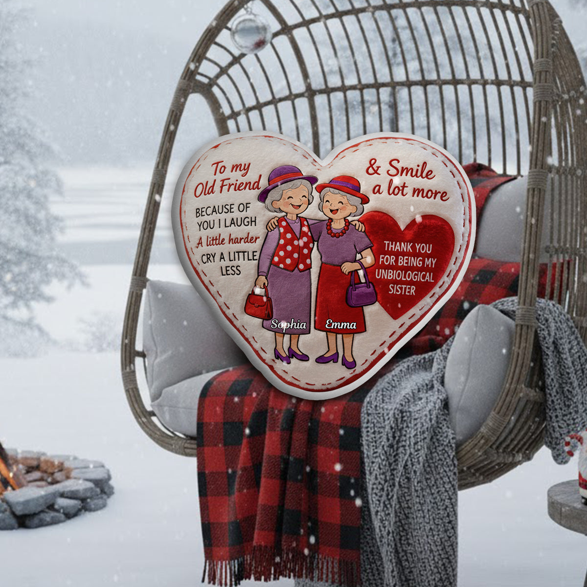 Vieux amis - Coussin personnalisé en fausse fourrure en forme de meilleure amie