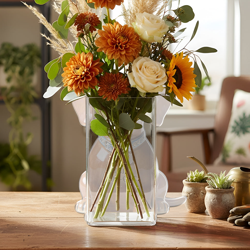 The front acrylic panel is printed on one side with vivid, high-quality colors, adding depth and personality while keeping a clean, modern look. The pot’s height and proportions make it suitable for small plants, fresh flowers, dried arrangements, or artificial bouquets, making it a flexible décor piece for homes, offices, or gift-giving.