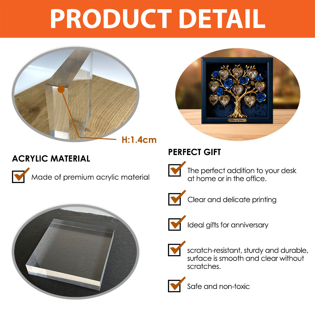Cadre photo avec rosier pour couple/famille/cadeau pour la fête des mères... - Plaque acrylique personnalisée pour couple.