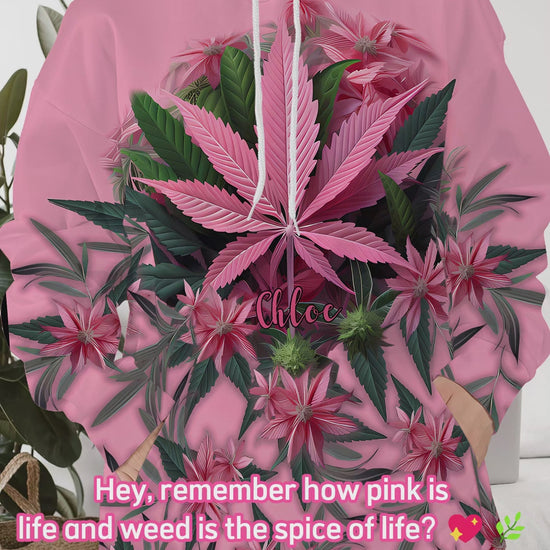 T-shirt rose « Stoner Chick » personnalisé avec motif cannabis.