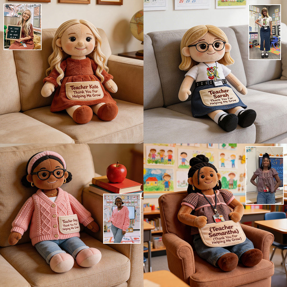 Thanks For Helping Me Grow - Personalized Teacher Premium Faux Fur Pillow