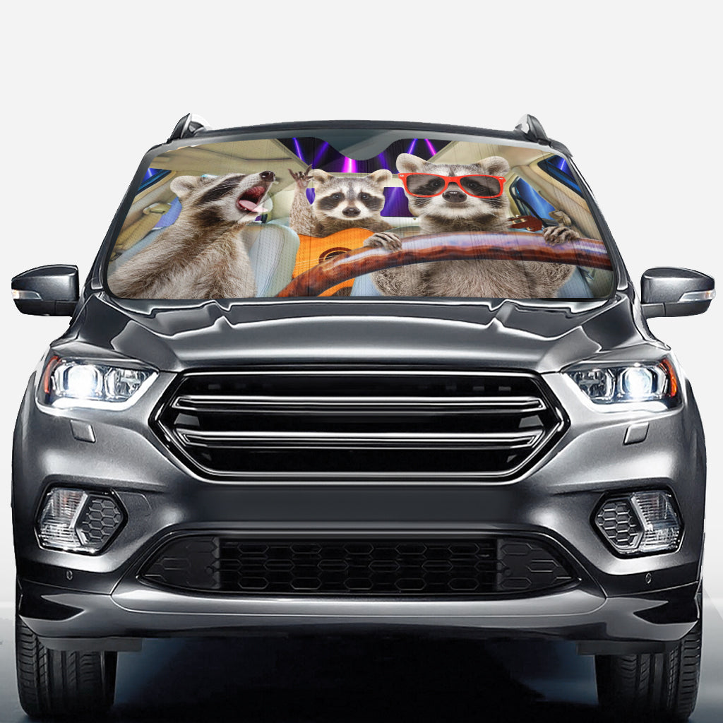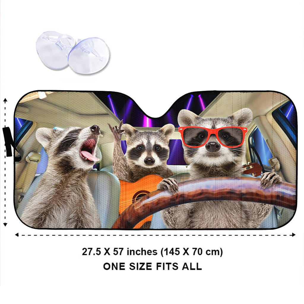 Pare-soleil de voiture personnalisé avec trois ratons laveurs rigolos