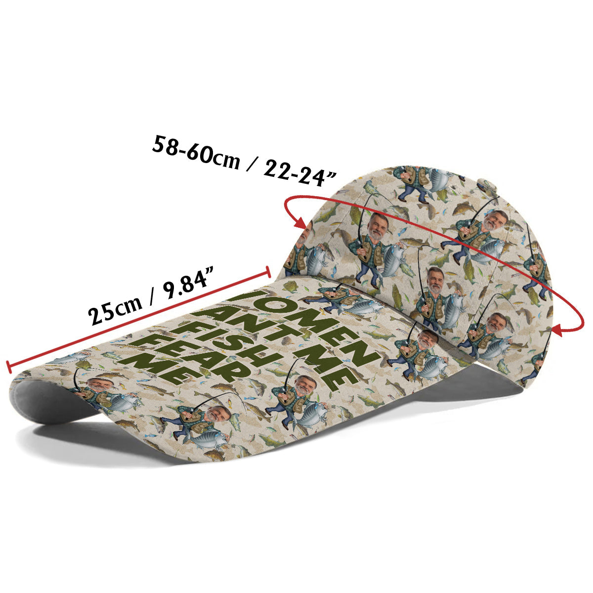 Les femmes me veulent, les poissons me craignent - Chapeau de pêche à visière extra longue personnalisé avec caricature humoristique