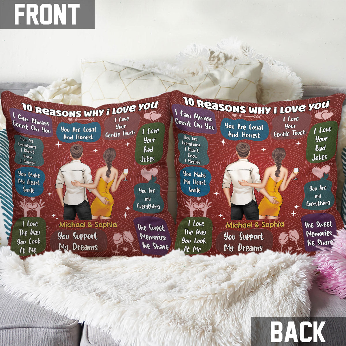 10 Reasons I Love You - Personalized Couple Throw Pillow
