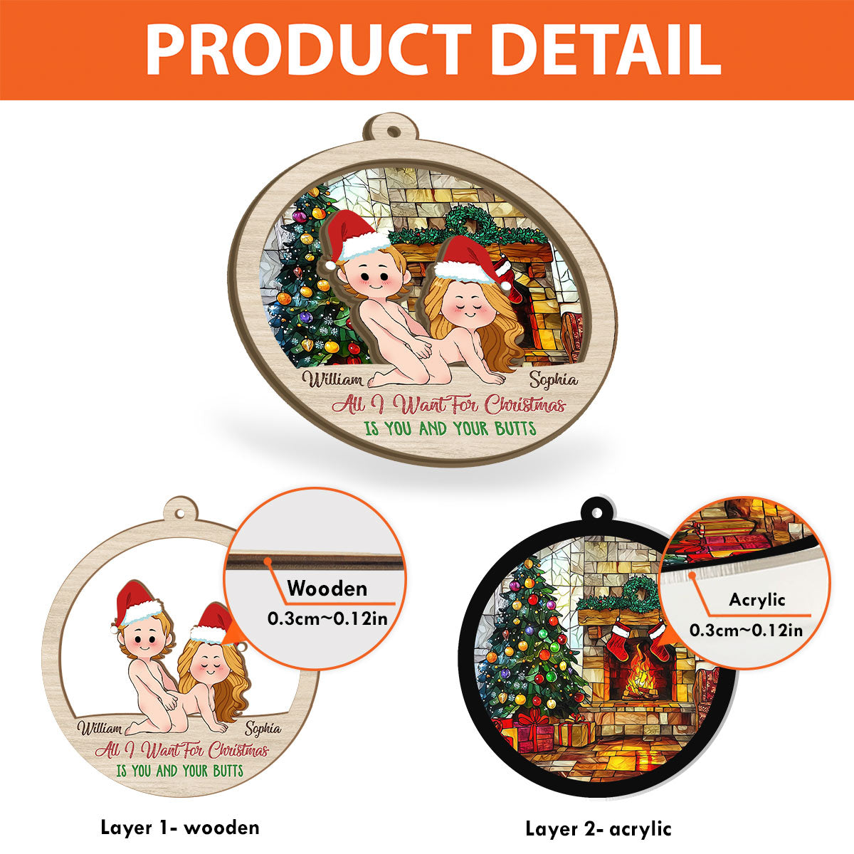 All I Want For Christmas Is You And Your Butt - Personalized Couple 2 Layered Window Hanging Suncatcher