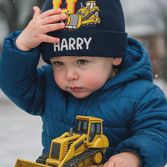Alphabet Construction Vehicles - Personalized Kid Beanie Hat