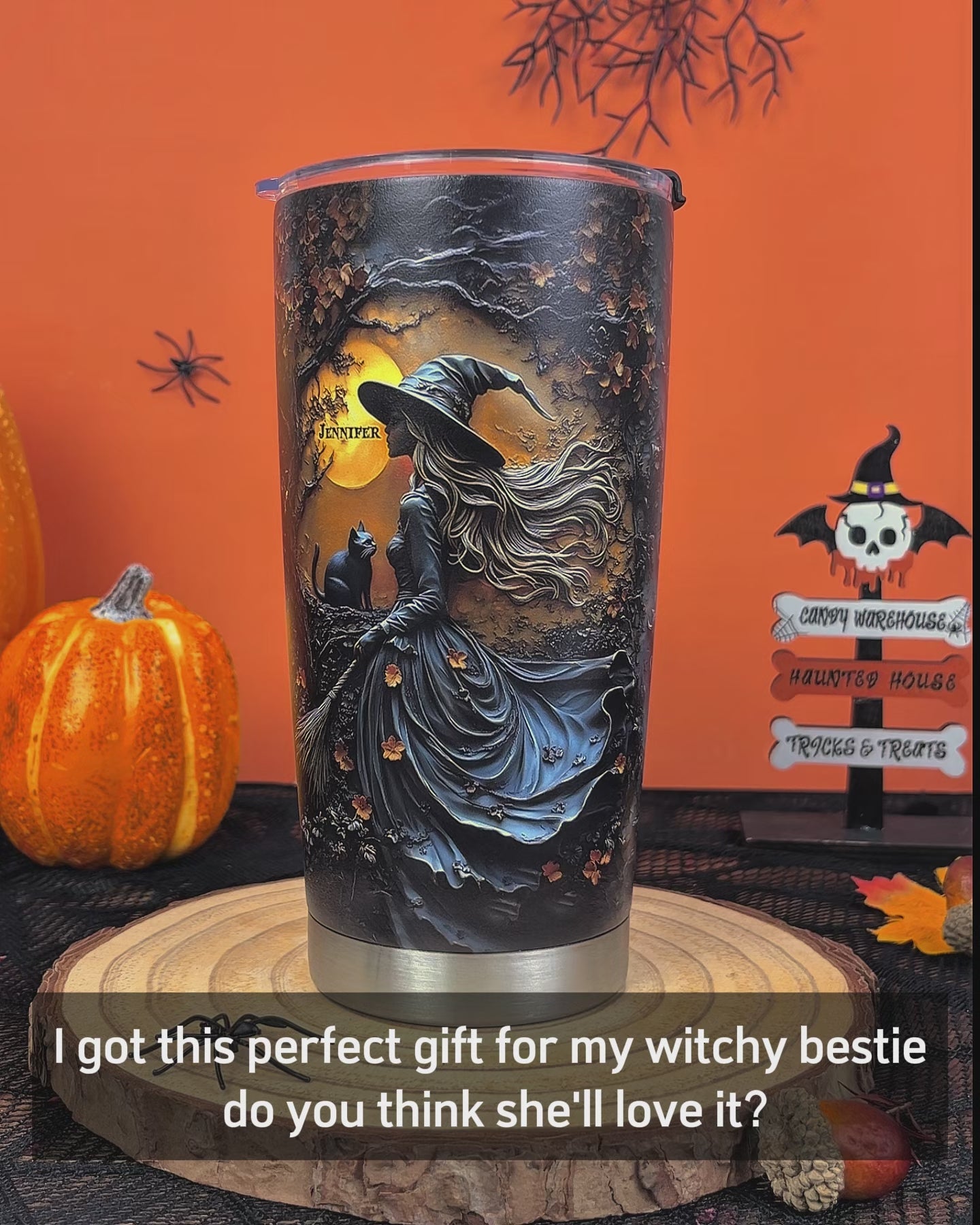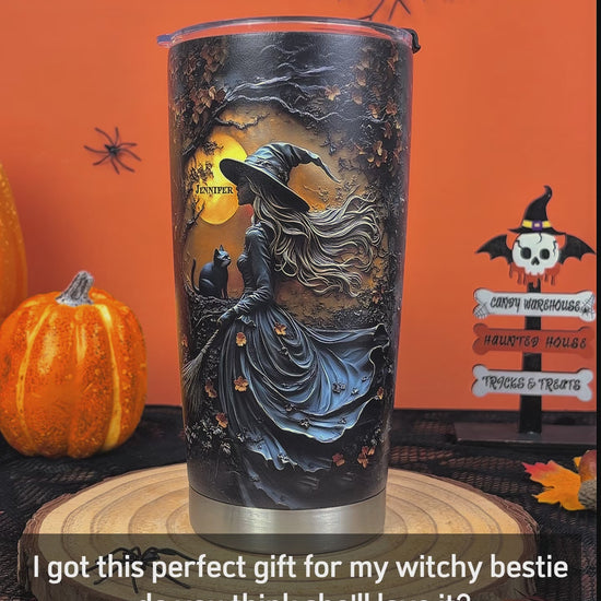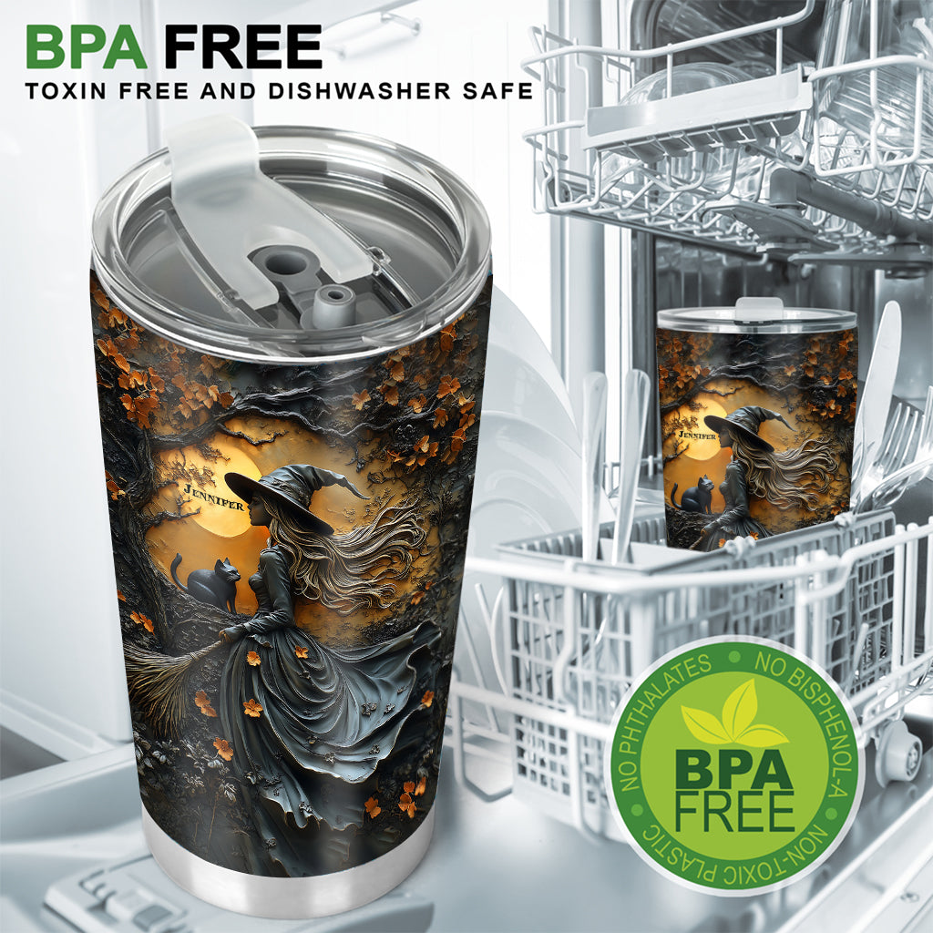 Beautiful Witch & Her Black Cat - Personalized Witch Tumbler