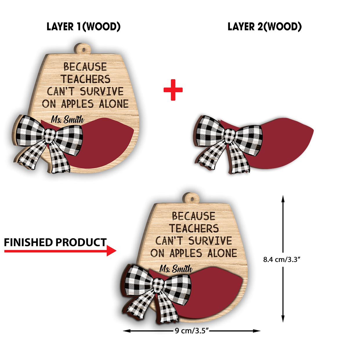Because Teachers Can't Survive From Apples Alone - Personalized Teacher 2 Layered Piece Ornament