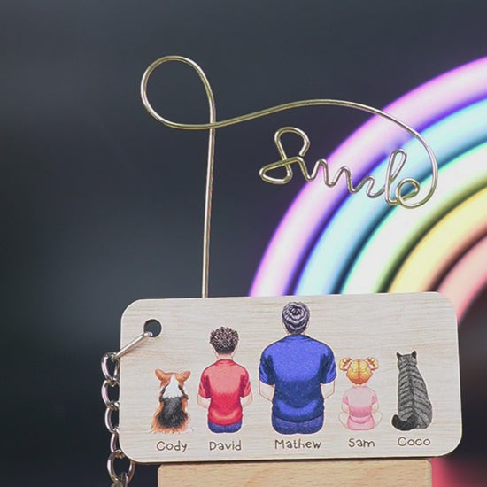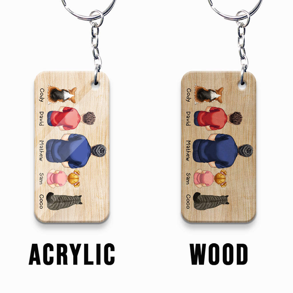 Best Dad Ever Back View Man Kids Dog Cat - Personalized Father Keychain