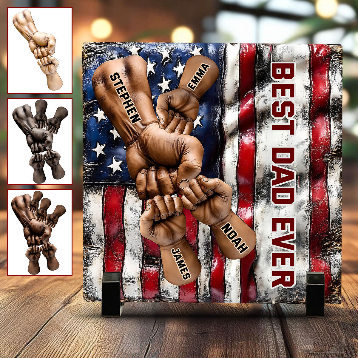 Best Dad Ever - Personalized Father Square Shaped Stone